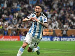 After Angel Di Maria scored to make it 2-0, he flashed the love symbol with tears cascading down below,